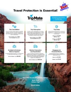 - Trip Assure: U.S. Tours has partnered with Trip Mate to offer a more robust travel protection plan. Trip Assure by Trip Mate offers coverage for trip cancellation, trip interruption, trip delay, medical coverage, and more. We believe their products provide you with the best coverage, price and service. This product is ideal for trips that involve airline tickets, cruises, and other select events. Your travelers must purchase directly online at their custom page.